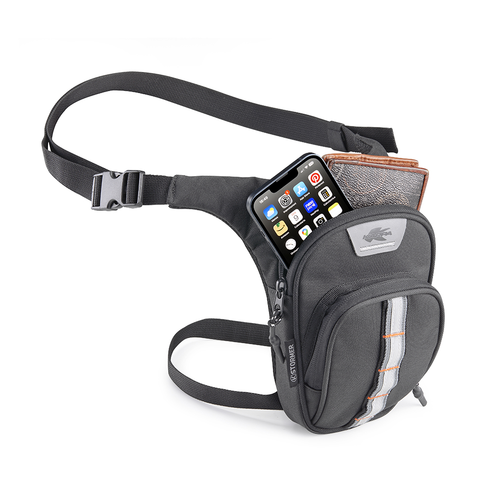 Le ST0105 K’STORMER est une sacoche de jambe d’un litre de la nouvelle ligne K’STORMER, dotée de bandes réfléchissantes cousues pour une meilleure visibilité et d’un design compact et fonctionnel, parfait pour les objets essentiels en déplacement.